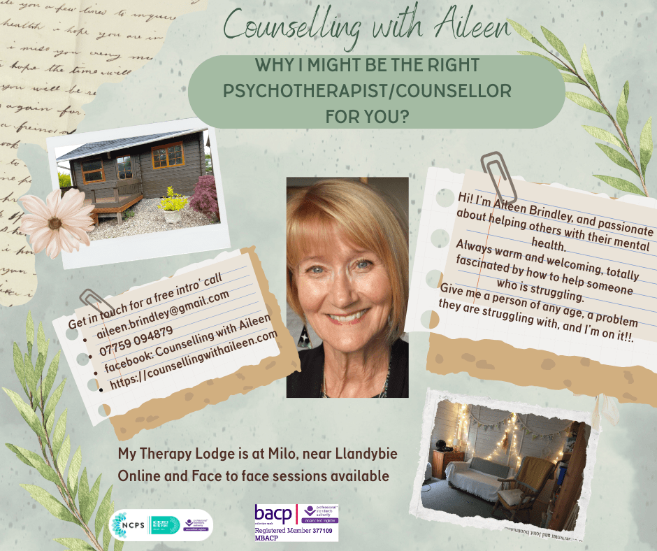 Based near Llandeilo in Carmarthenshire. Online counselling available also