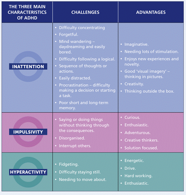 ADHD stands for ‘Attention Deficit Hyperactivity Disorder’. An estimated 1 in 20 of us have ADHD. Our brains work slightly differently. This can be an advantage in some ways or a disadvantage in other ways. This depends on what you are doing at the time and, of course, what your natural talents and abilities are. ADHD is about potential and possibility. ADHD is one of a group of learning differences – this is what we call ‘Neurodiversity’. ADHD is a neurodevelopmental condition. It encompasses various differences in how we understand information from the world around us. It also affects how we learn.